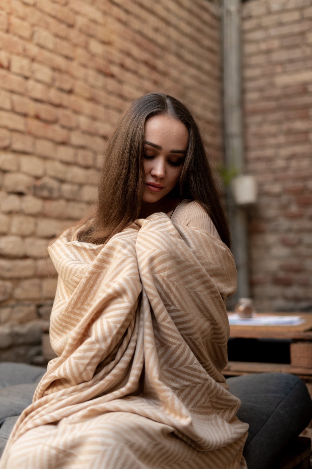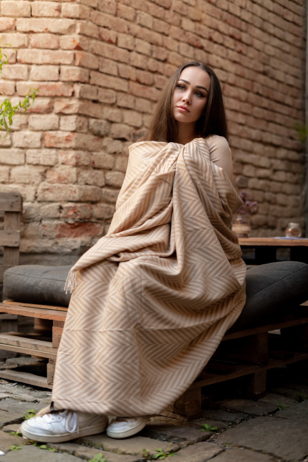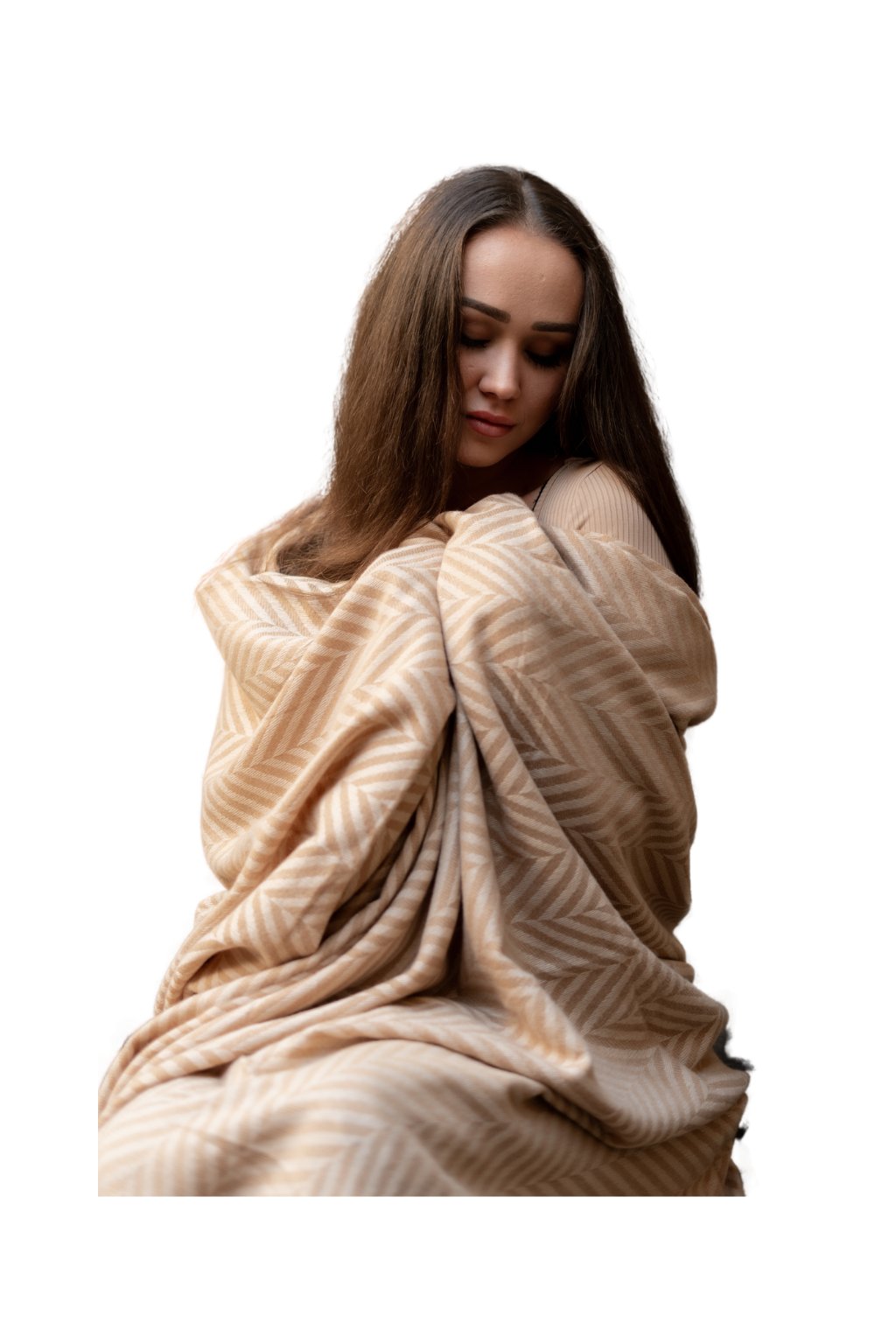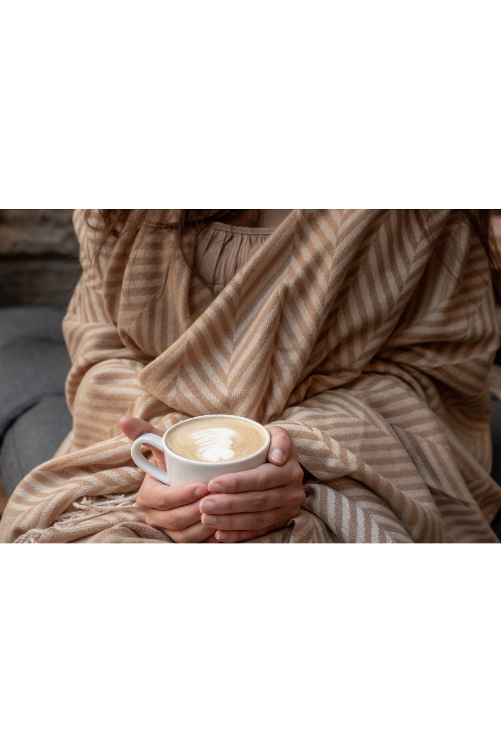 Kaschmir-Decke HERRINGBONE gold mit Fransen